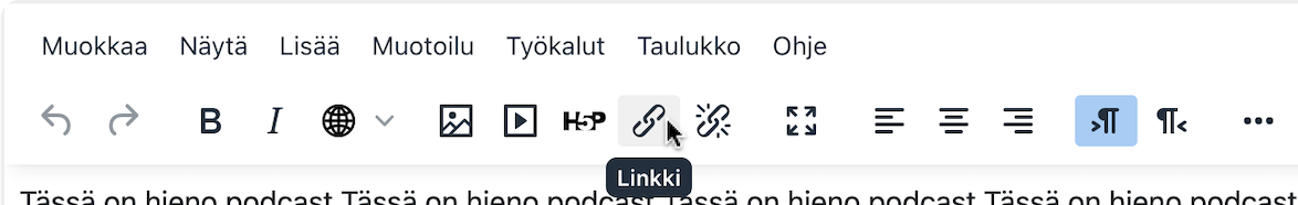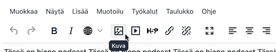 - Siirry Moodleen ja avaa tekstieditori siitä kohdasta, johon haluat saada videoupotuksen.
