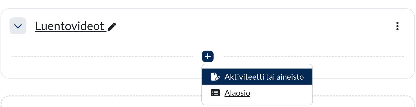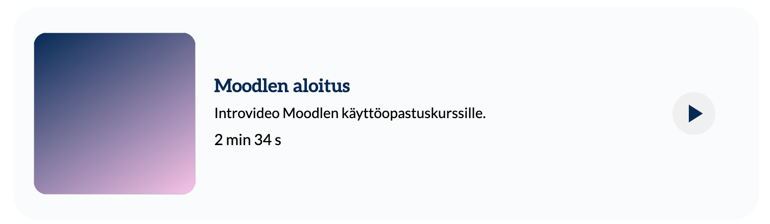 Jos haluat rajata videon tai podcastin vain kurssin opiskelijoiden käyttöön, se kannattaa asettaa Moniviestimessä listaamaton-tilaan. Näin se ei näy Moniviestimen hakutuloksissa tai listauksissa, mutta sitä pystyy toistamaan Moodle-kurssialueella, jonne se on upotettu. Et tarvitse Moodleen upotettuihin videoihin polkuavainta.