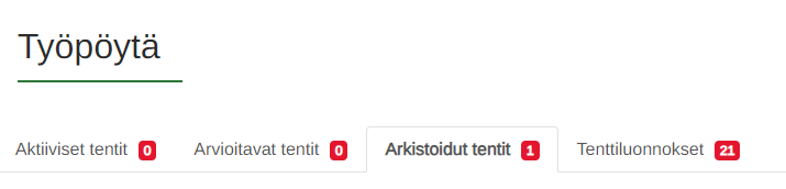 - Huom. arvioidut tenttivastaukset säilyvät tässä Arkistoidut tentit -näkymässä puolen vuoden ajan (!)