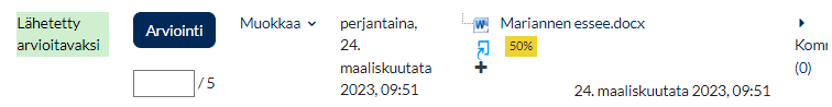ja Tentissä esseen arviointi-näkymästä (Tentti > Suorituskerrat > essee-tehtävän kohdalta Vaatii arvioinnin)