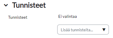 - Tunnisteet: Voit lisätä tunnisteita (hashtag, tag, avainsana) tenttiin.