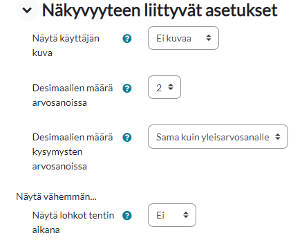 - Näkyvyyteen liittyvät asetukset:Voit määritellä mm. arvosanojen desimaalien määrän tarkkuuden.