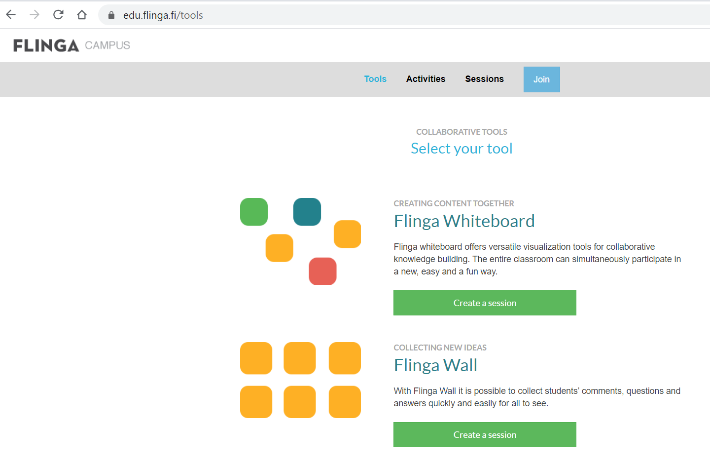 Flinga platform is as a tool for collaborative knowledge construction. Flinga allows students to participate either individually or simultaneously to conversations or questions asked by the teacher. With Flinga it is possible to collect students’ comments, questions and answers quickly and easily for all to see. The entire classroom can simultaneously participate in collaborative working in an easy way.