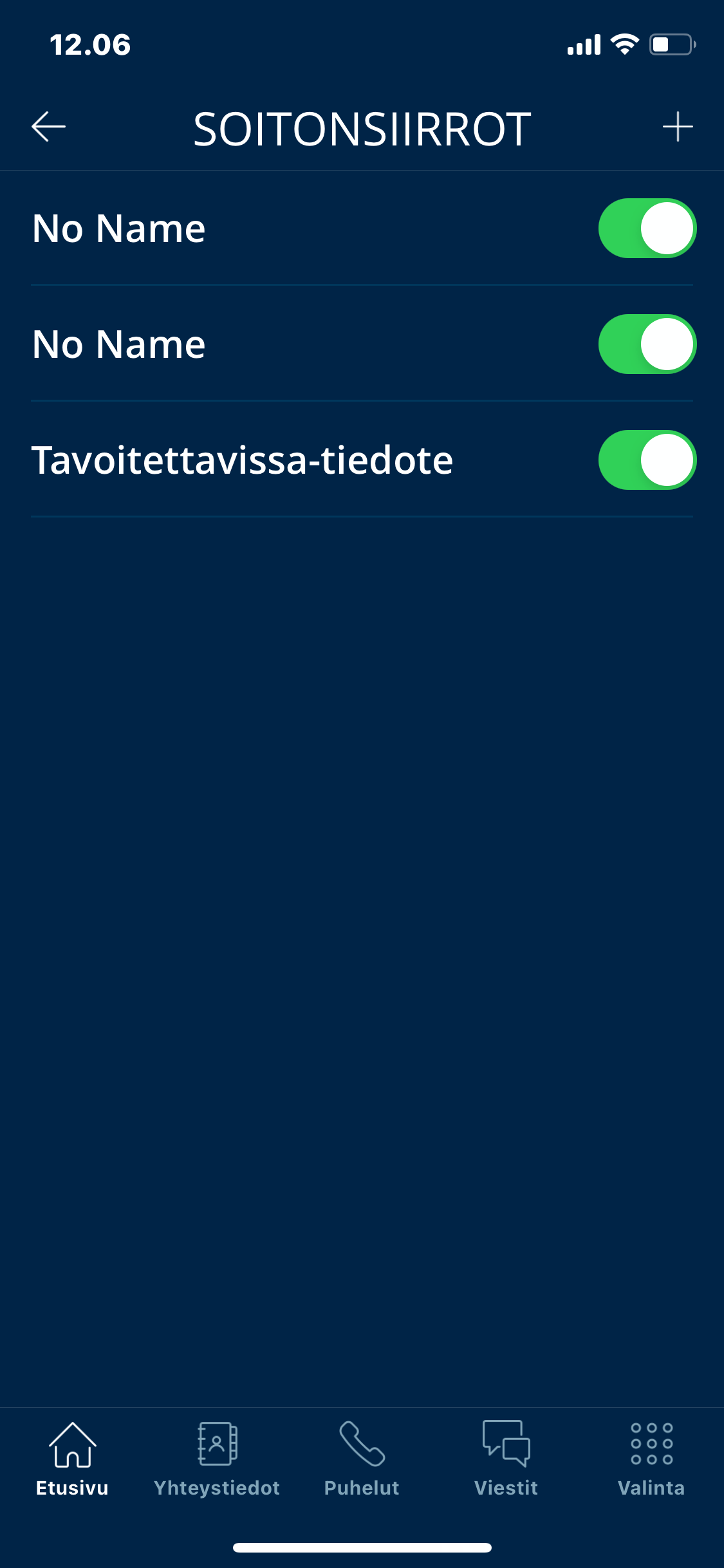 Lisäksi voit tehdä uusia soitonsiirtoja tämän sivun kautta.