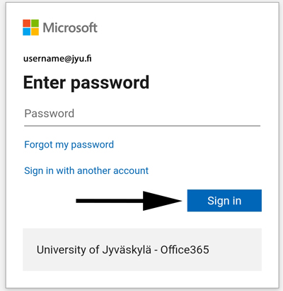 5. Now you will be redirected to Office365 password portal, Please type in your JYU password and tap "Sign In"