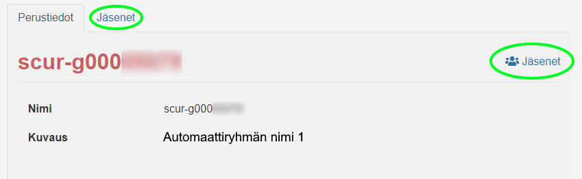 Avautuvalla sivulla näkyy automaattiryhmän perustiedot. Automaattiryhmän jäseniä voi tarkastella klikkaamalla 'Jäsenet'-painiketta.