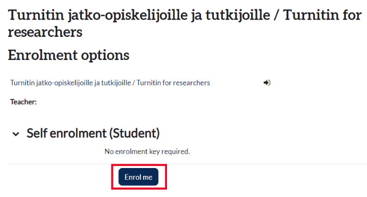 You can also use a common JYU Moodle course area: https://moodle.jyu.fi/course/view.php?id=32166 In this course area, you can independently submit your document to Turnitin. You can do a self registration when you have a JYU account by clicking Enrol me.
