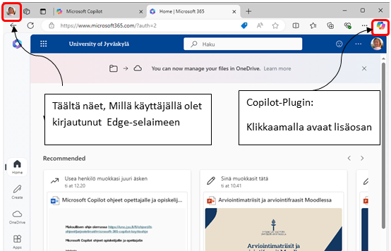 Käyttöliittymä Microsoft Edge-selaimessa: