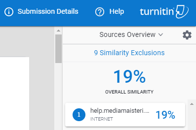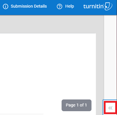 Turnitin raporttin samankaltaisuus avautuu oikeaan reunaan sivua. Jos samankaltaisuusprosenttia ei näy, niin avaa oikean reunan raportti nuolipainikkeesta.