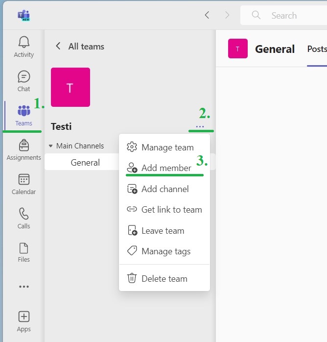 1. Siirry siihen Teams johon haluat kutsua vierailijan