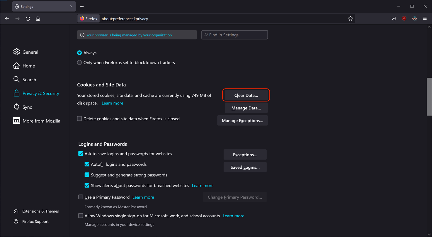 Välimuistin ja evästeiden tyhjennys Firefoxista: