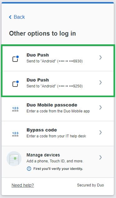 The next time you use Duo Mobile authentication, you can choose which phone will receive the notification/approval request.