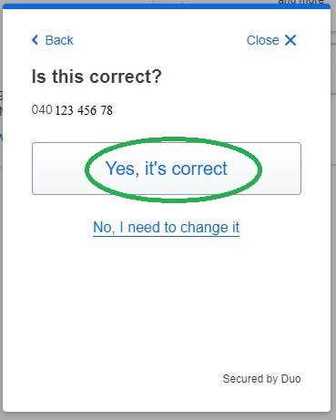 Step 5: Confirm your phone number by clicking "Yes, it's correct".