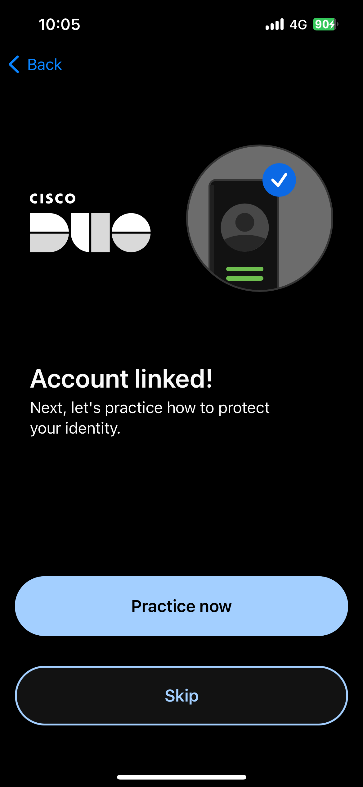 Next, the Duo Mobile application suggests that you practice using Duo Mobile. You can choose to practice or skip it by selecting "Skip".