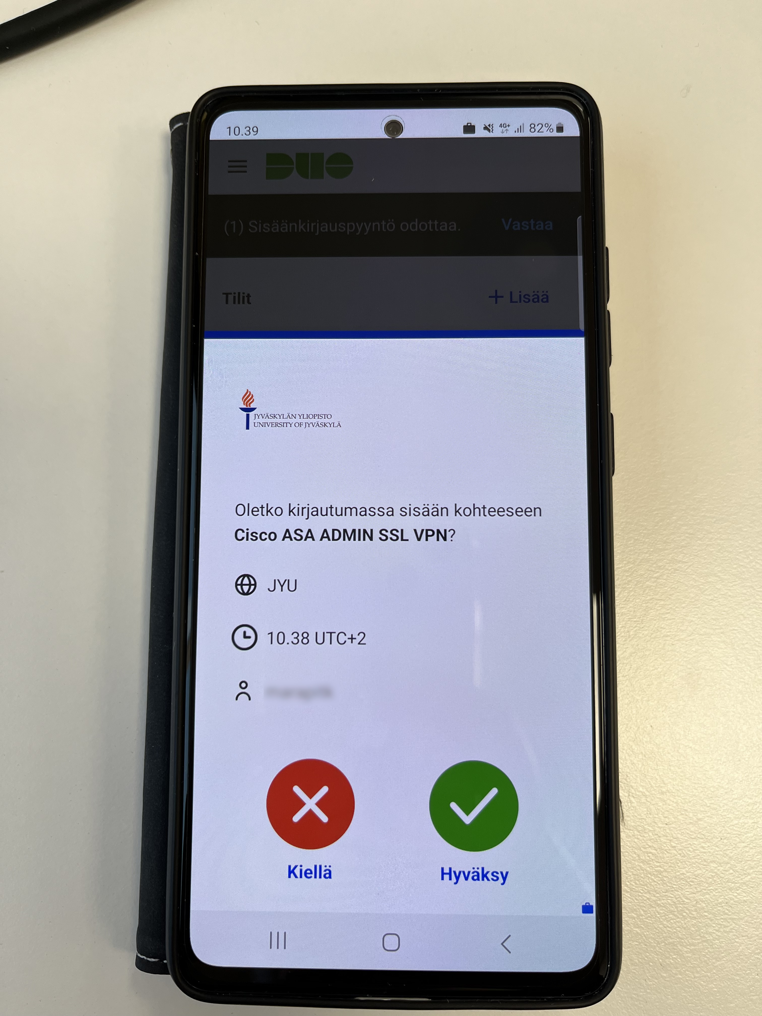 Tämä ohje opastaa VPN- yhdistämiseen Yliopiston verkkoon käyttäen Duo Mobile kaksivaiheista tunnistautumista.