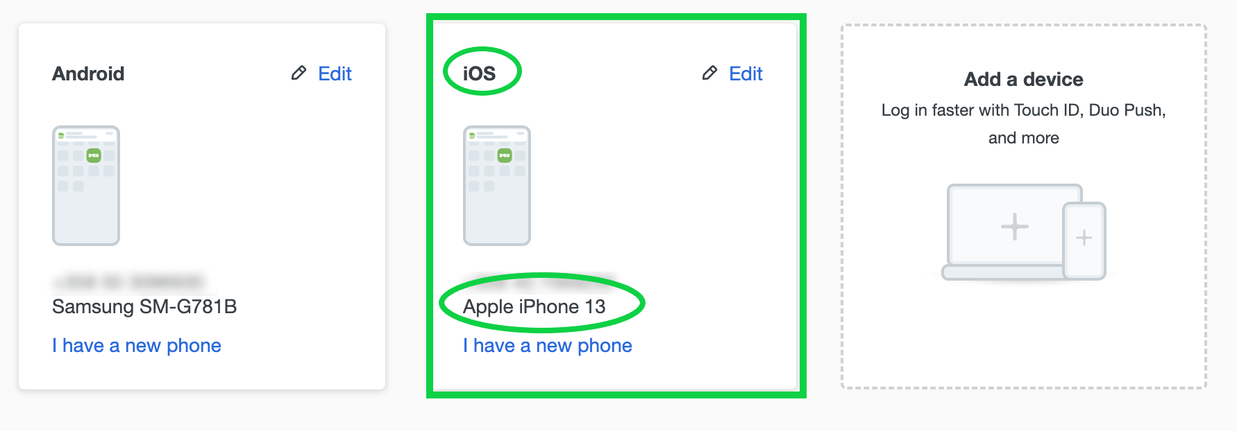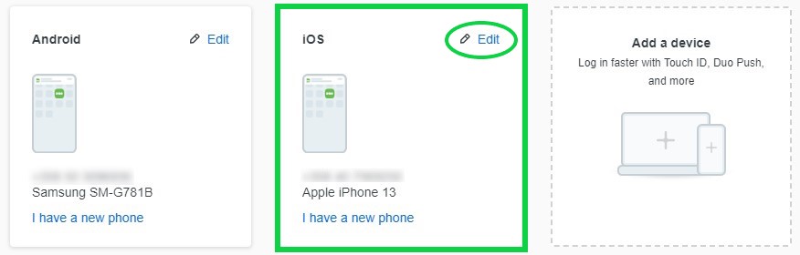 You can manage the devices connected to Duo Mobile from the portal. In the portal, you can add a new device, delete a device and replace the current/old device with a new one.