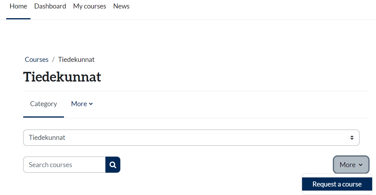 3. On the right side of the page that opens, you will find the More button, which, when clicked, will bring up a menu from which you will click Request a course.