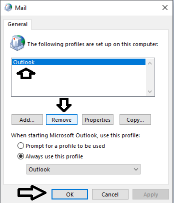 Valitse profiili tai profiilit ja sitten Remove ja Yes, tämän jälkeen Apply ja OK.