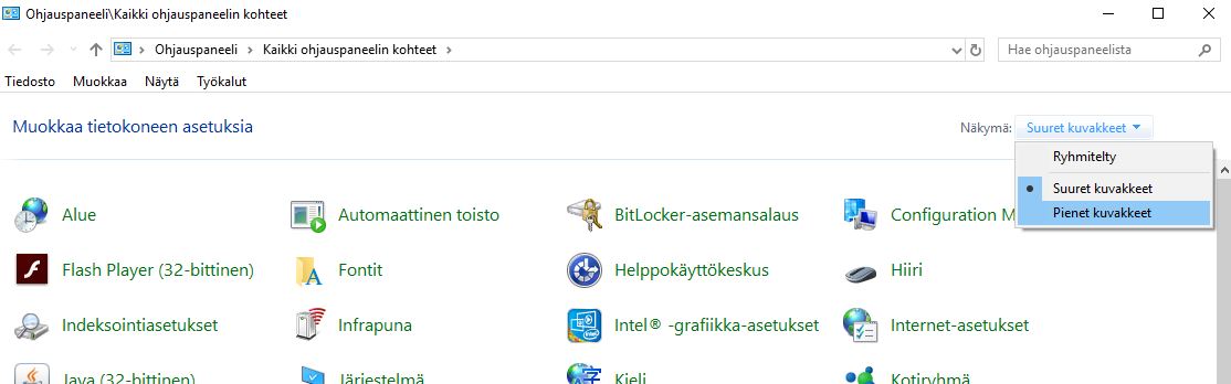 Valitse näkymäksi pienet kuvakkeet (oikea yläkulma).