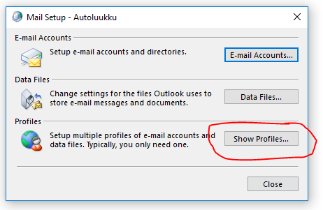 Tämän jälkeen aukeaa pienempi ikkuna ja klikkaa painiketta Show profiles.
