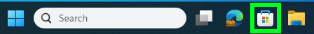 1. Valitse Microsoft Store -kuvake alapalkista, mikäli kuvaketta ei ole alapalkissa löydät sen käyttämällä Windowsin haku- toiminallisuutta. Kun asennat Power BI Desktop -ohjelman käyttäen Microsoft Storea, ohjelma päivittyy jatkossa automaattisesti.