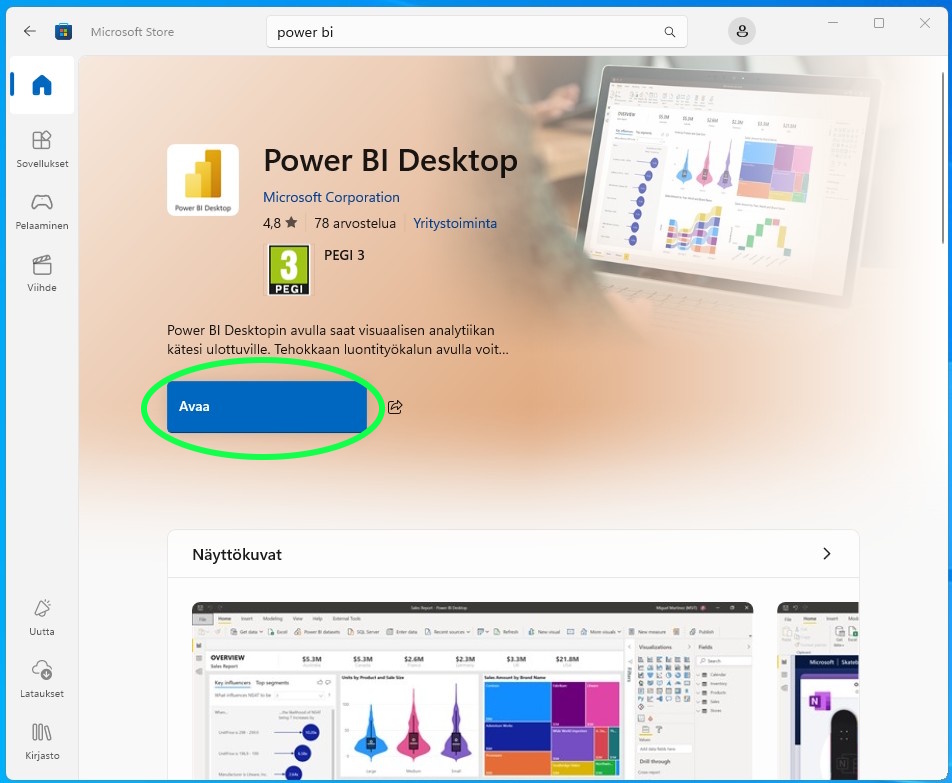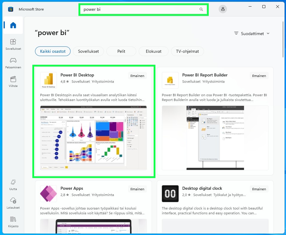 2. Etsi Microsoft Storessa Power BI Desktop- ohjelma ikkunan yläpalkista.