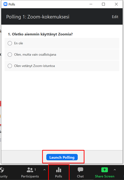 Etenkin jos ryhmän koko on suuri, usein kysymykset ja kommentit on sujuvinta kerätä chatin kautta.