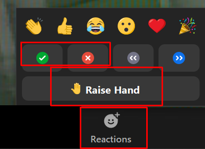 Opettaja voi nopeasti selvittää isonkin ryhmän mielipidettä tai kannatusta: esim. käydäänkö läpi tarkemmin jotakin asiaa. Participants –näkymässä osallistuja voi klikata Yes / No –painiketta ja ne näkyvät havainnollisesti punaisena tai vihreänä värinä sisältäen kyllä/ei -koodin.