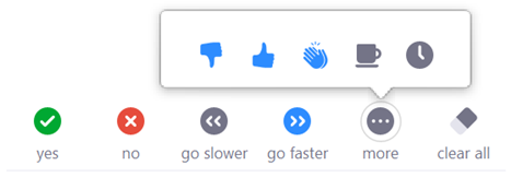 Osallistuja voi antaa myös muuta palautetta aplodit, peukku, sydän jne. Ko. palaute näkyy palautteen antajan kohdalla noin 10 sekuntia ja poistuu automaattisesti.