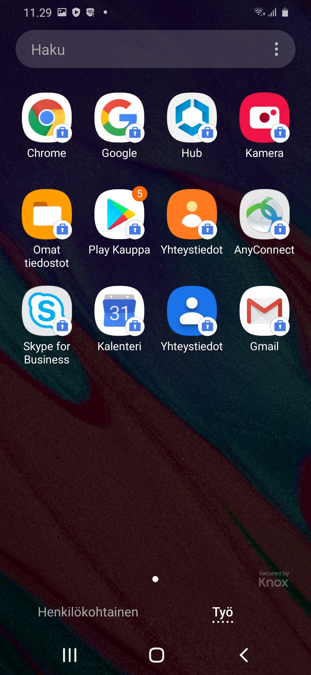 Android for Work is a way to separate work and personal usage on an Android smartphone. Android for work is a default setup of a new JYU Samsung smartphone.
