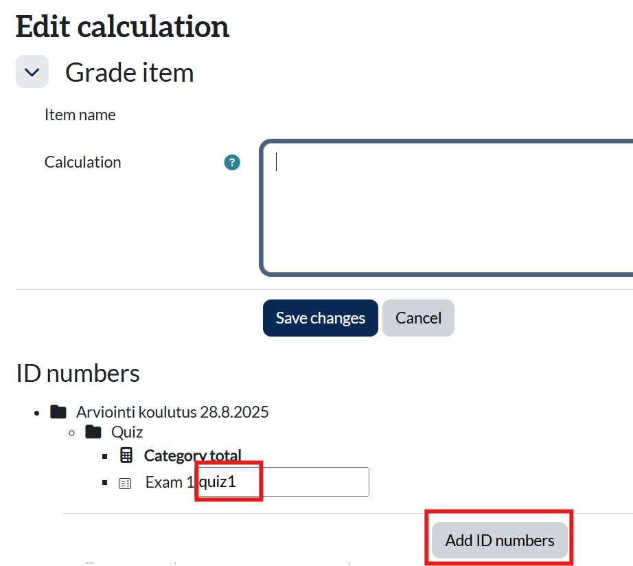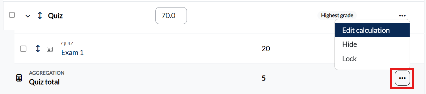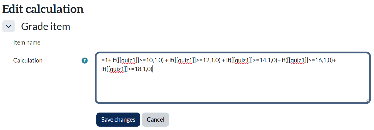 - Write to the Grade item Calculation field function like this, where the the points limits can be changed: