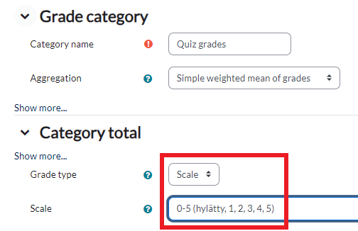 - Change Grade type to Scale and choose the scale 0-5 ans Save
