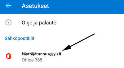 5. Valitse Outlook tili, jonka tiedot synkronoidaan laitteelle