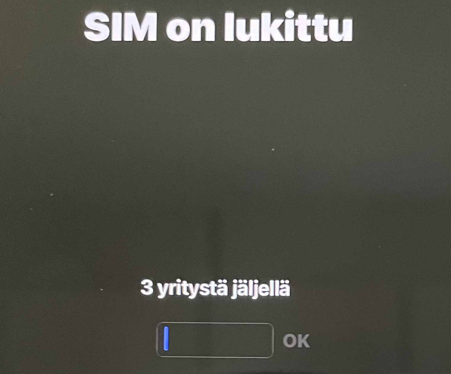 Jos unohdat SIM-kortin PIN koodin, kysyy laite nk. PUK koodia kolmen yrityksen jälkeen.