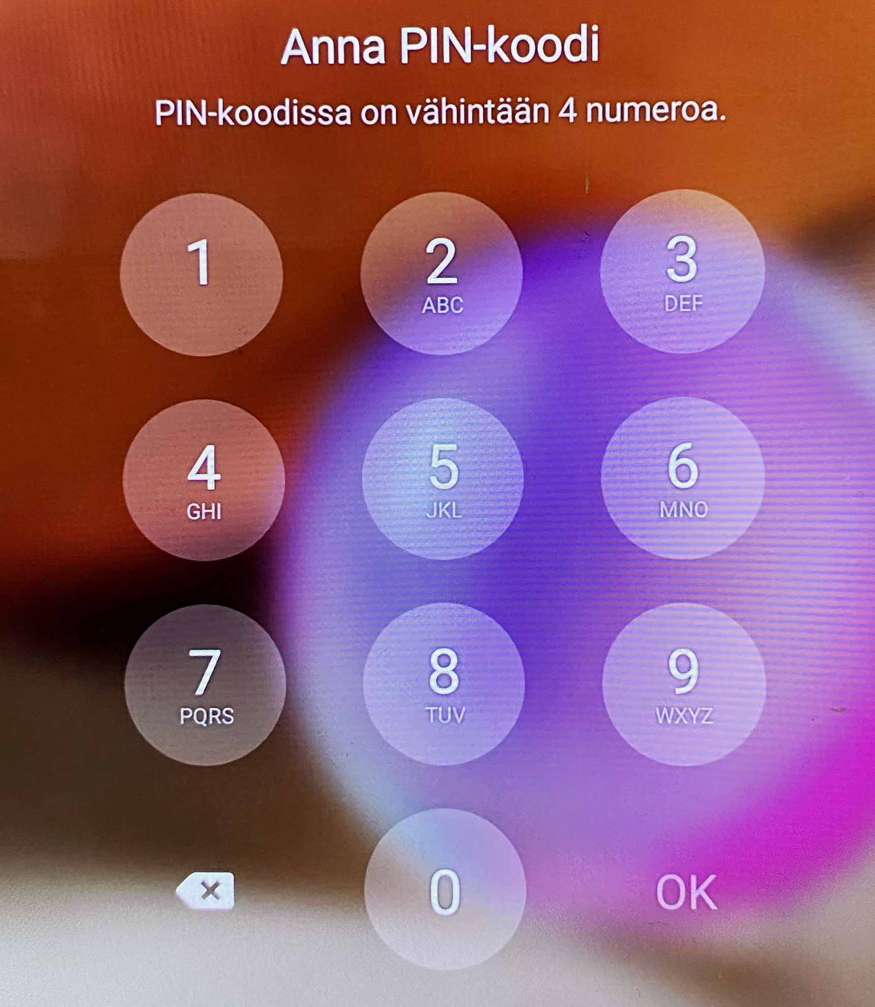 2. Näytön lukituksen PIN-koodi (6 numeroa)