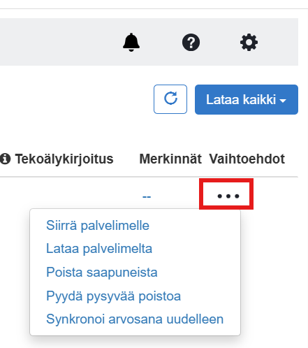 - Palautusrivin päässä olevasta valikosta löytyy palautukseen kohdistuvia toimia.