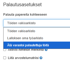 - Valinnaisista asetuksista asetat ensimmäiseksi Palautusasetukset.