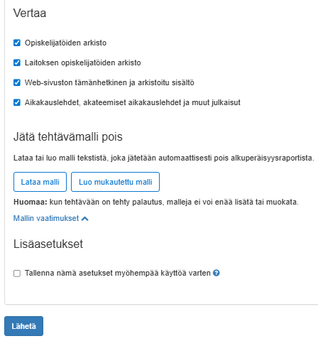 - Vertaa-asetuksista voidaan muokata samankaltaisuuden vertailuun liittyviä asetuksia.